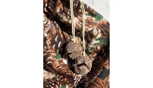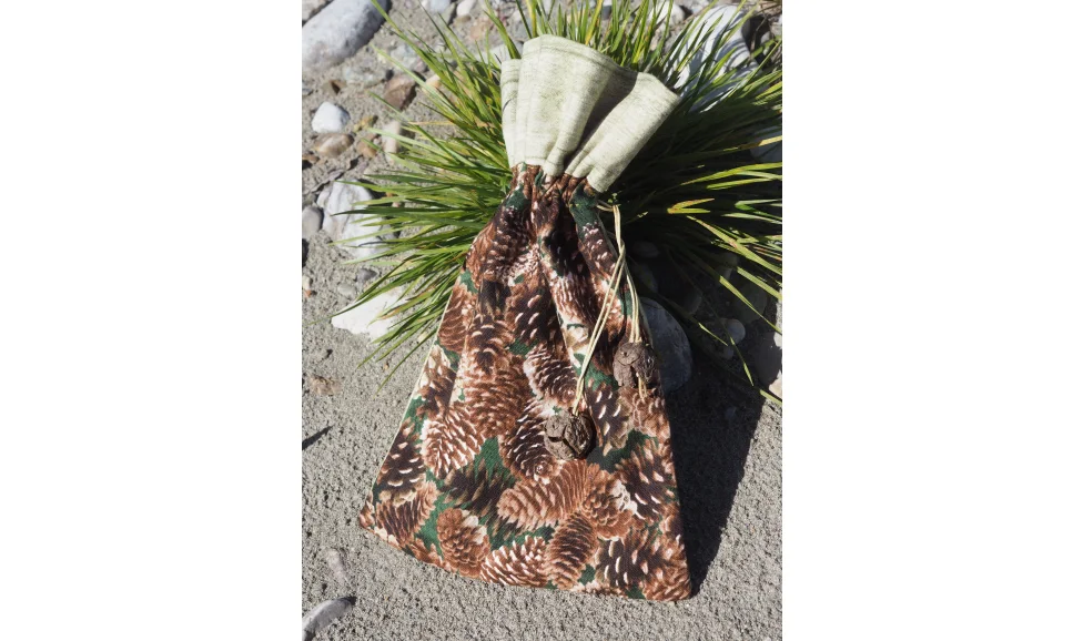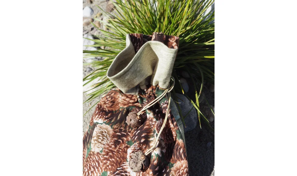 Jeder Waldbeutel ist mit handgeschliffenen, echten Holzscheiben oder kleinen Baumzapfen an den Zugbändern verziert – ein echtes Unikat. Diese Beutel sind nicht nur praktisch für die Aufbewahrung Ihrer Schätze, sondern auch stilvolle Akzente für Ihr Zuhause. Langlebig, farbintensiv und jedes Stück einzigartig.