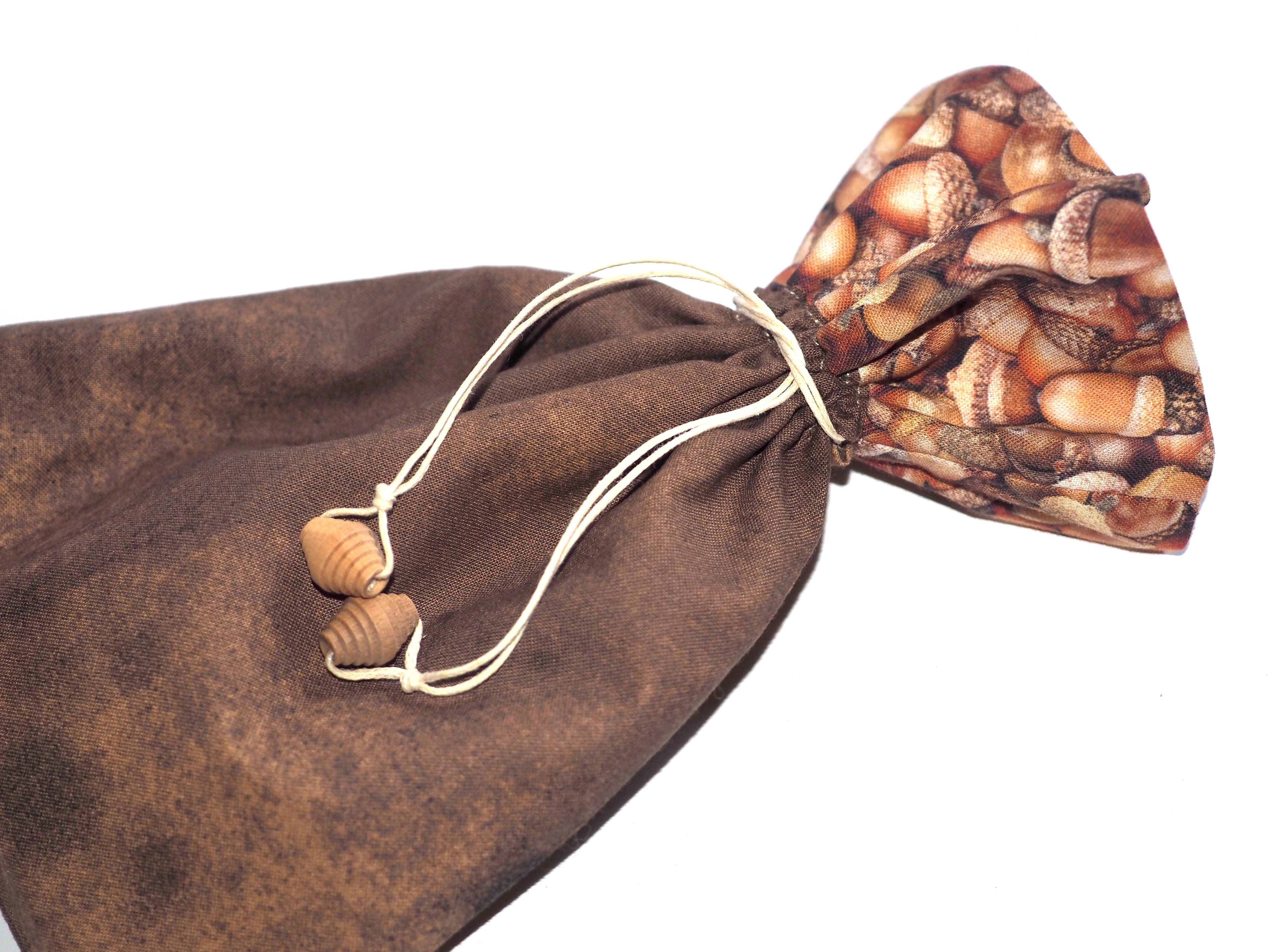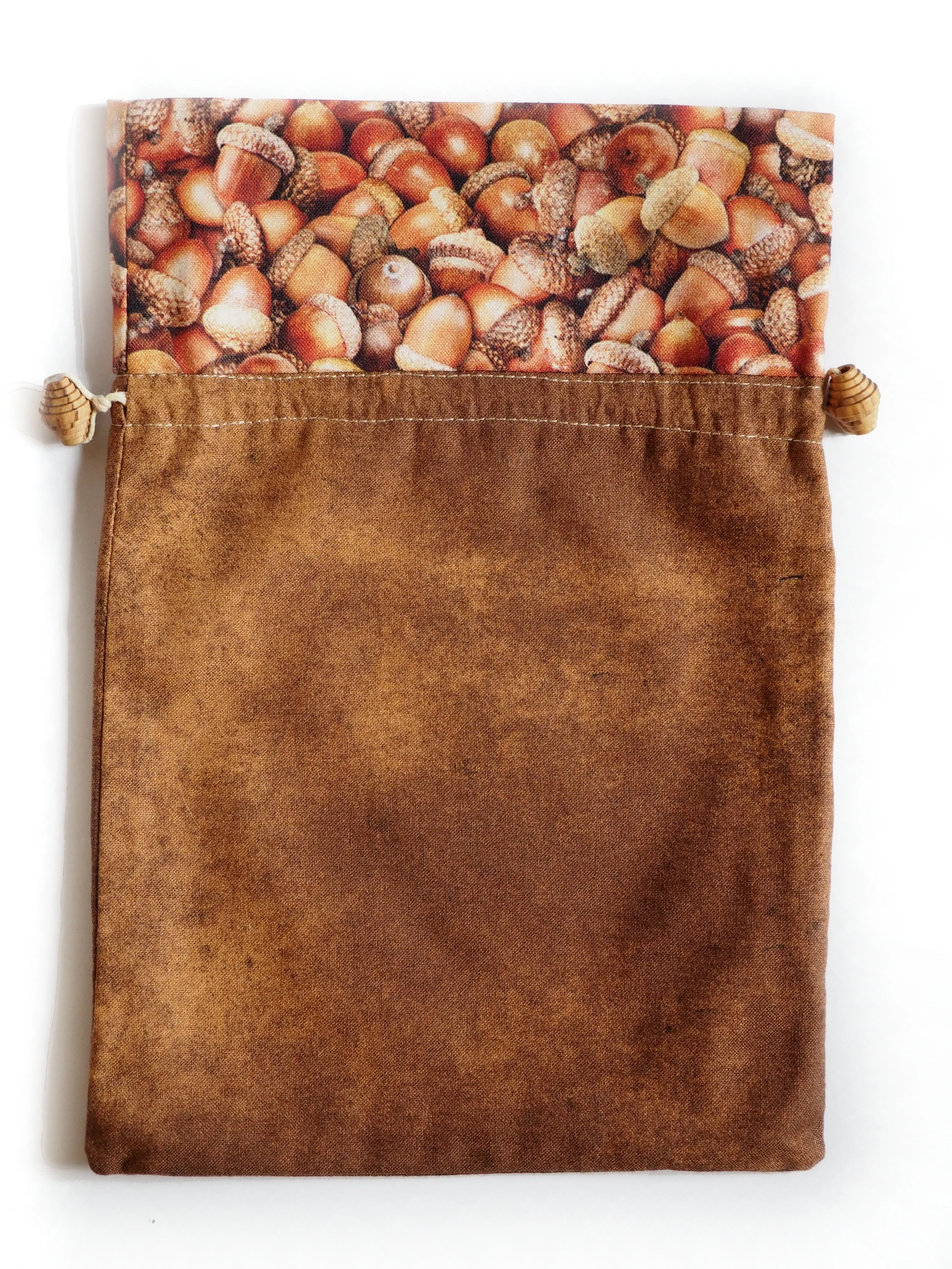 Jeder Schatzbeutel ist ein Einzelstück, das mit viel Liebe und handwerklichem Können von Angelika Maurer hergestellt wird. Der Digitaldruck in höchster Qualität lässt die Farben lebendig erstrahlen und macht den Beutel zu einem echten Blickfang – die Eicheln wirken dabei so realistisch, als könnte man sie direkt vom Stoff pflücken.
